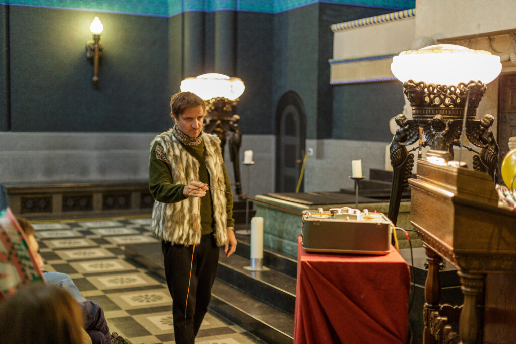 We can locate these divagations of thought, in a hybrid form, halfway between the fantastic tale, a scientific experiment, a story of ideas around the radio medium and a gradual shift to the occult. A rite sets in to give a new experience to listeners between hypnosis, magic, and witchcraft gradually towards a more collective form of communion.